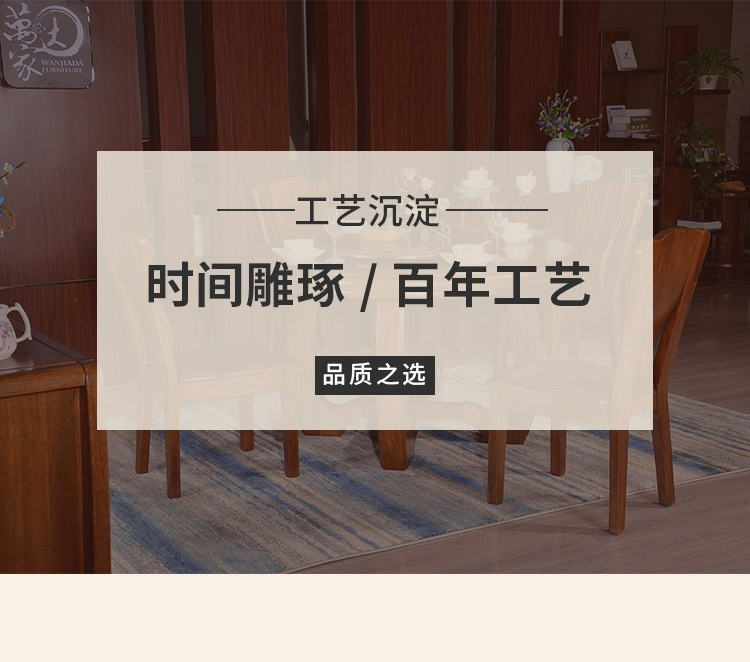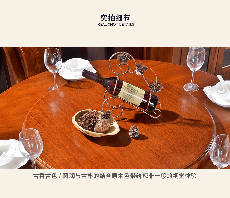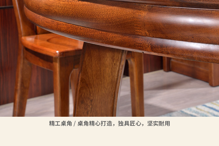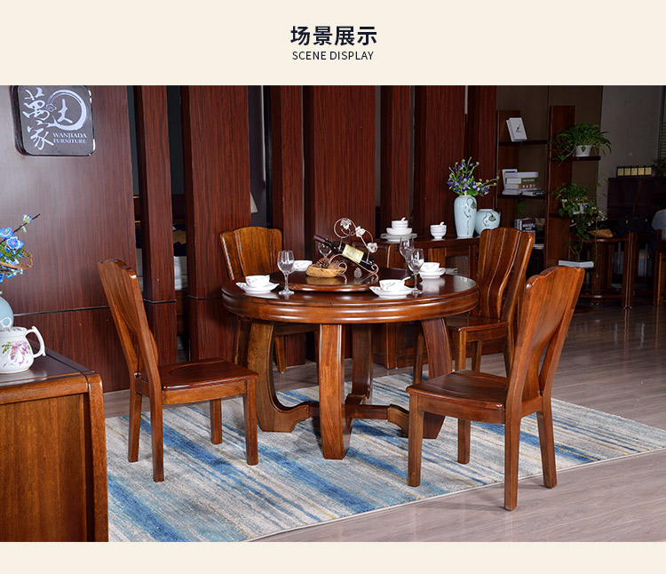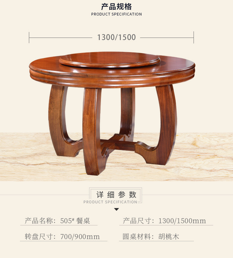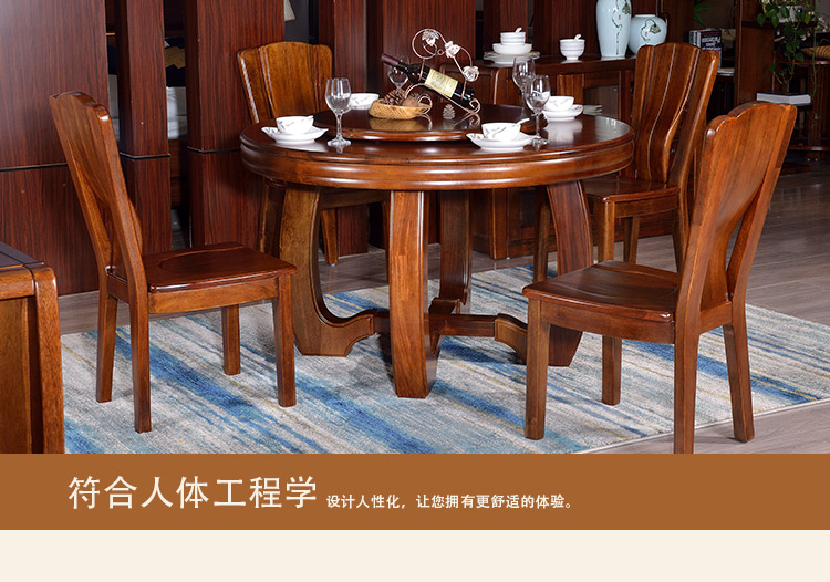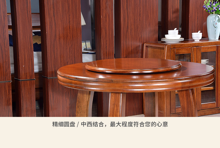 实木圆餐桌组合 胡桃木家具餐桌餐椅套装505# 胡桃木圆桌转盘 桌六椅