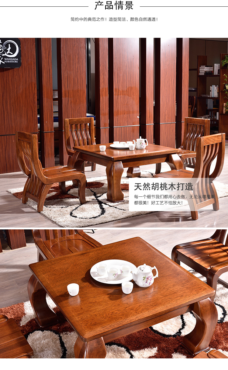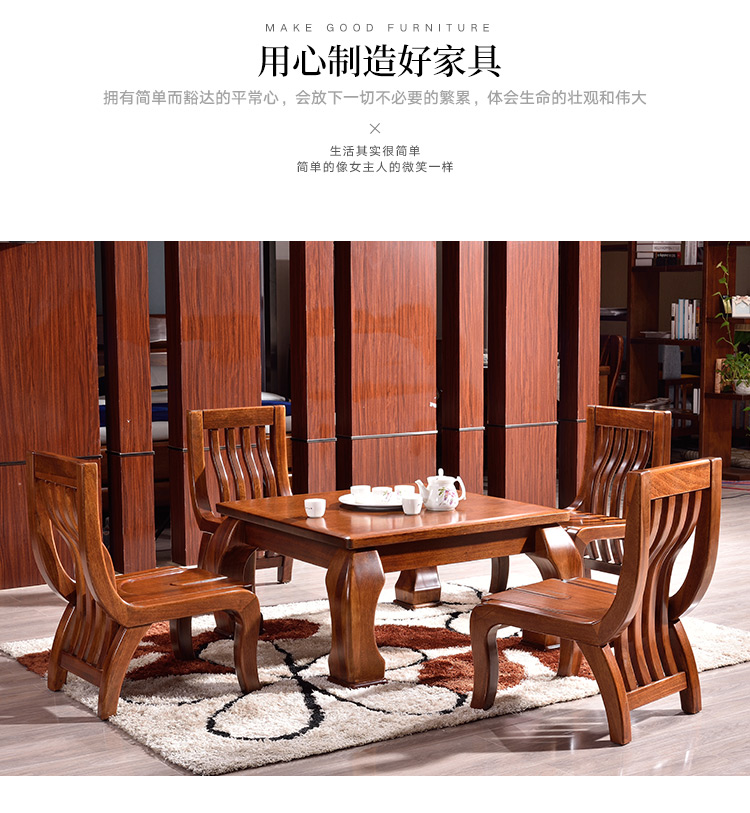 实木茶几客厅休闲组合胡桃木休闲茶几组合 中式客厅全实木组合208