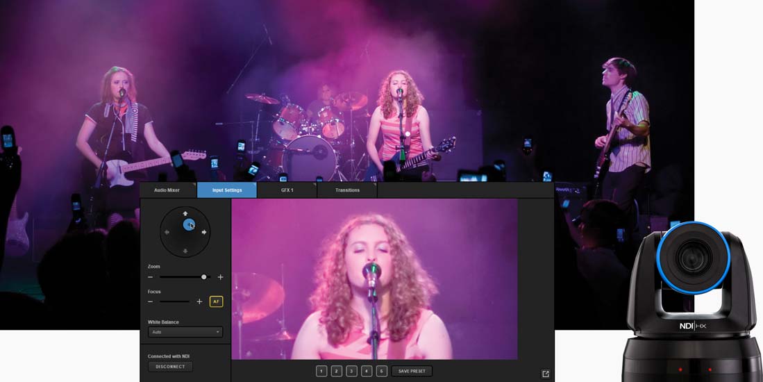 输入具备专业色彩校正, 提升/伽玛/增益/色调/饱和度控制与行业标准色轮, 实时颜色校正,去隔行,锐化,缩放,旋转,平移和裁剪任何输入。 所有效果均在4:4:4 32位色彩空间中处理,以获得完美视频质量