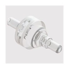 扩展描述: 种直列式透明丙烯酸阀体止回阀,配有白色硅胶鸭嘴和普通阀杆端口,适合 1/8" ID 管。该阀的开启压力为 3" H2O