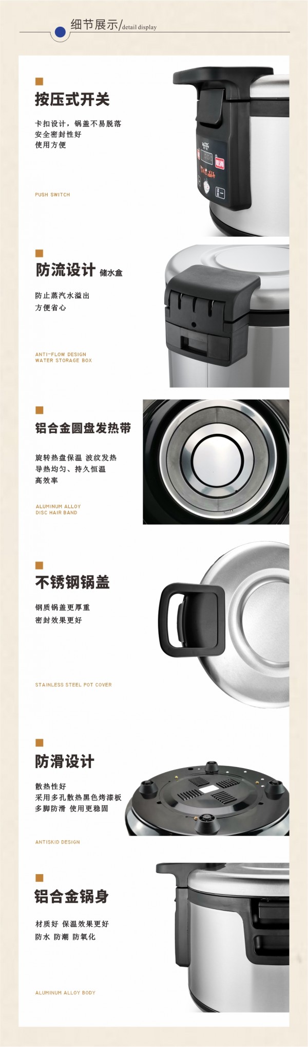 1、这款智能保温桶属于商用,大容量19-32L,适合连锁餐饮、酒店、学校食堂、机关单位等大型场所使用。