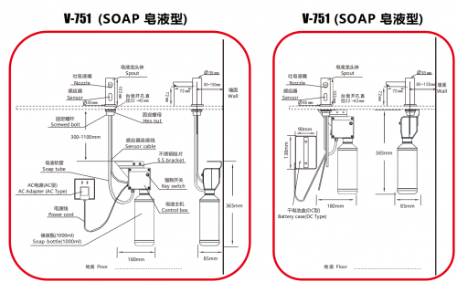 重力铸造加工黄铜本体,表面镀铬。感应皂液器具有以下性能: