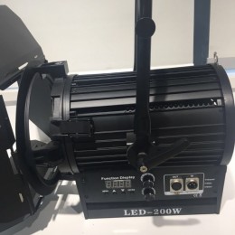 200W是 款电视台演播室专用影视聚光灯,功率200W,色温5600K和3200K可选,DMX512全面可调光,手动调焦,采用台湾晶元集成LED发光体,菲涅尔透镜,光穿透力强,聚焦无虚边,色彩还原性好,适合做主持人轮廓光和眼神光。无风机,外置散热器,可靠稳定,3年小于5%衰减,3年质保,适用于高标准演播室灯光。上市8年,赢得全国1000多家省市 电视台主持人和灯光师的厚爱,CCTV新闻联播工程师重点推荐
