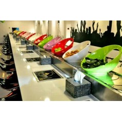 旋转串串转吧火锅,品种多样 消费实惠,食材均有营养混搭的健康原理,品种丰富多样,有经济实惠的羊肉系列、 肥牛系列、海鲜系列、虾滑系列、鸡肉系列、刺身系列、小吃系列等多样品种,可以 餐品尝更多美味 菜品,节省时间,节省金钱。