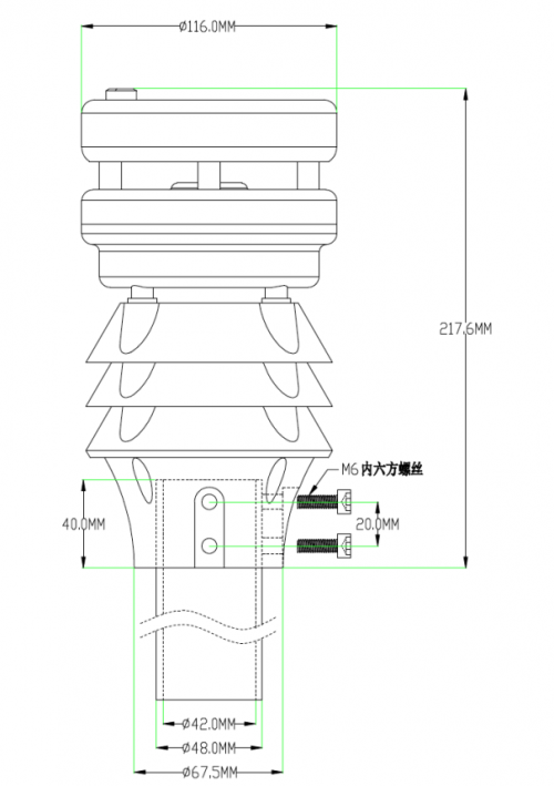 备注 1、大气温度、湿度、气压三个参数集成在*起的传感器安装在*个三层户外防辐射罩内,防辐射罩采用PC+纤维特殊比例配置,内部喷涂隔热层*大程度减少太阳辐射的影响。无移动部件,保证了长时间测量数据的准确度。