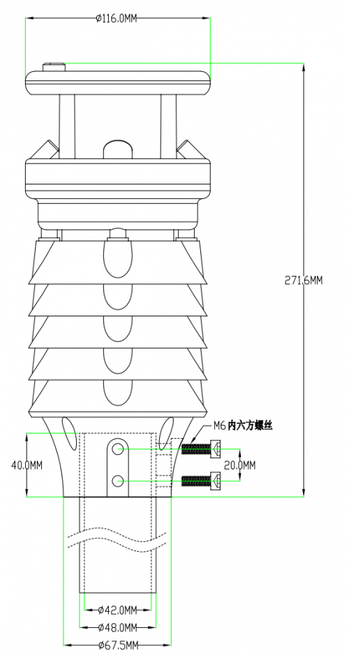 备注说明 1、大气温度、湿度、气压参数集成在*起的传感器安装在*个三层户外防辐射罩内,防辐射罩采用PC+纤维特殊比例配置,内部喷涂隔热层*大程度减少太阳辐射的影响。无移动部件,保证了长时间测量数据的准确度。