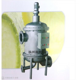 刮刷式过滤器 设计特点:1、采用自动在线连续过滤,满足工艺自动化操作要求;2、系统采用电动驱动:利用减速机驱动旋转刮刷式清洗系统,自动清除附在滤网上的杂质,保持滤网过滤功能;3、PLC控制功能:压差清洗、定时清洗、手动清洗;4、过滤效果佳,滤网采用不锈钢楔型滤网,清洗干净、不易磨损。结构与工作原理: 原料介质通过进料口进入过滤机内,从内到外经过滤网间隙过滤,过滤后的原料由上而下流向下部的出料口,大于滤网间的杂质被截