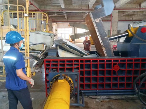 压块过程:将所需打包物料人工或都铲车方式装入压缩室内,PLC操控盖缸盖,使盖板旋转直至封闭压缩室,锁紧机构锁牢,接着侧油缸压头和主压头依次*后挤压,将料挤压成束块,主缸卸压,闸门缸前推,打开闸门,然后,主缸将压块推出料箱。门盖缸、侧油缸缸、主缸、闸门缸缸依次*后回程。束块之长短,决定于所挤压物料的重量、材质和形状。