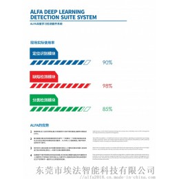 ALFA系统提供了 款基于工业图像分析的深度学习软件。ALFA系统基于CNN的机器学习+神经网络算法,是 款强大可靠的可现场测试的软件解决方案。