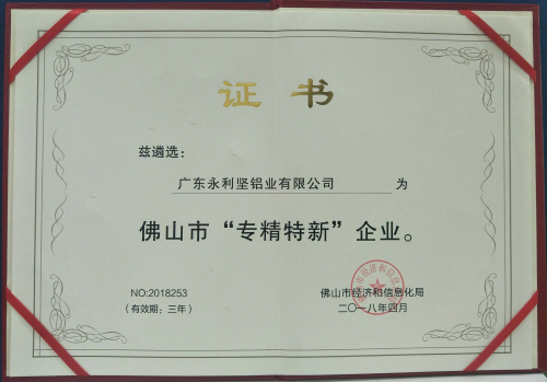 荣誉资质 佛山市专精特新企业证书
