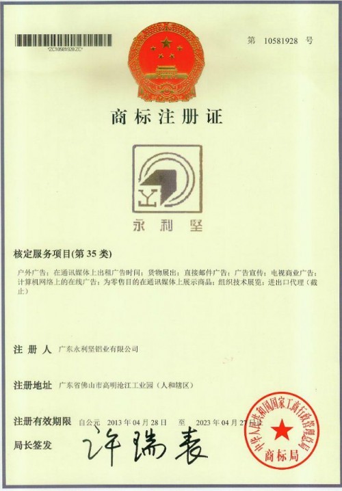 Mr. Chen yunxian, former vice governor of guangdong province and mayor of foshan city, has high hopes for "yonglijian", the old brand of guangdong aluminum: "honesty, solid quality, solid price and high-quality service are the foundation of the enterprise to establish the world.