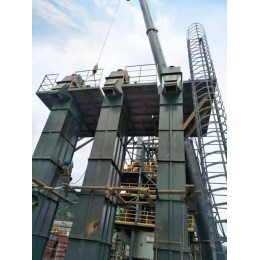 1、上部装置:安装有轨道(双排道),防止链条摆动,逆止器,防止料斗回转,物料阻满下部机壳,卸料口装有橡胶板防止回料。