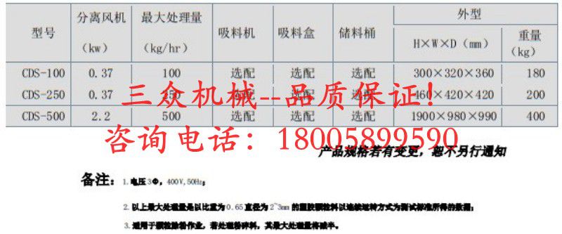 用途:适用于各类塑胶原料的除粉处理,如PET,PA,PC等,不推荐用于回收料的处理;当原料为特别温或者是干燥后需要密闭循环时,请特别提出;本系列共有三种机型,处理量为1000kg/hr.。