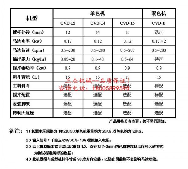 常规螺杆直径分为12,14,16mm三种,可提供每小时0.05到64公斤的不同输出量供客户选择;