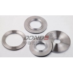 金属齿形垫片 种实体金属垫片, 般 用精密的车床或专用铣床在金属平垫片的二面加工成同心的90度夹角形成波形的锯齿形沟槽,由于与其它密封面的接触是多个同心圆的线接触,因此具有迷宫密封作用,根据不同的介质和工况条件,可选择不同的金属材料。多数情况下齿形垫片可以用和其它非金属材料组合使用以达到更好的密封效果。可参考金属齿形组合垫片。如果不带覆盖密封层直接使用,也能达到良好的密封效果,但在高压场合中容易对法兰的表面造成损坏。所以 般要求密封面的粗糙程度在Ra1.6um以上。