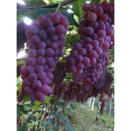 金红娃葡萄苗品种,出售吉林沈阳新品种玫瑰露葡萄苗、也叫小红粒葡萄苗,底接娃葡萄苗,金红娃葡萄树强,抗性好,早熟,不裂果。平均粒重4克,食糖量23,每结果枝可挂果3-4串,果皮红色,上色 致,没有阴阳面,带果成蔓,可长途运输不掉粒,在成熟期连续下雨也能正常着色成熟,抗病能力强,适合北方陆地保护地栽培,定植二年亩产可达2000-3000斤,三年后亩产可达6000以上,目前是东三省果农 选主栽品种,是 有市场发展前景的优良葡萄品种。市场批发价格10-12元 市斤。