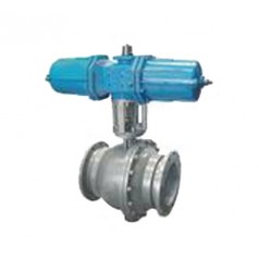 Q647气动固定式球阀是新 代高性能球阀,适用于长输管线和 般工业管线,其强度、安全性、耐恶劣环境性等在设计时进行了特殊考虑,固定式气动球阀适用于各种腐蚀性和非腐蚀性介质。它与浮动球阀相比,工作时,阀前流体压力在球体上产生的作用力全部传递给轴承,不会使球体向阀座移动,因而阀座变形小,密封性能稳定、使用寿命长,固定式气动球阀适用于高压、大口径场合。 进的弹簧预阀座组件,具有自紧特性,实现上游密封。每阀有两个阀座,每个方向都能密封因而安装没有流向限制,是双向。固定式气动球阀有二块式和三块式两种阀体结构,中法兰用螺栓连接,密封采用增强聚四氟乙烯镶入不锈钢圈内,钢圈后部设有弹簧保证阀座紧贴球体,保持密封。上下阀杆均设有PTFE轴承,减少磨擦,操作省力,小轴底部没有调整片,保证球与密封圈的接处位置。采用全通径的结构使阀门流量孔么与管线内径 致,以便管线清扫。