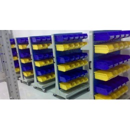 背挂零件盒的后部带有工艺挂钩,可插在百叶挂板上及专业物料整理架上,前侧为斜面,易于货物的存取,并可插分类卡片。其广泛应用于生产、维修、仓储等领域。