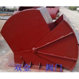 由本体、扇形闸板、轴、密封副、执行机构等部件构成。手动或执行机构推动摇杆使扇形闸板沿轴心旋转开启,物料随即下落。待接料装置满载后再推动摇杆使扇形闸板复位,关闭截断下落的物料。