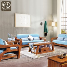 现代中式金丝胡桃木组合沙发客厅实木布艺沙发8802进口金丝胡桃木 修改