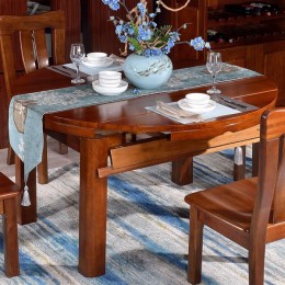 中式现代胡桃木餐桌组合圆形实木餐桌跳台圆桌4-6人餐厅桌椅组合502#