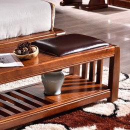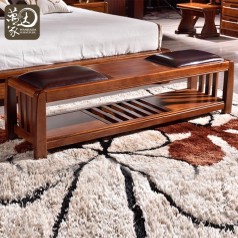 现代简约胡桃木全实木真皮床尾凳卧室床头凳换鞋凳床前凳 901#