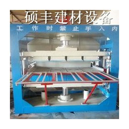 4)本设备出产量高:如按产品尺寸(长60厘米.宽30厘米.高6厘米)计算每8小时可生产40—45立方的产品。每20秒可生产以上尺寸的产品6块板材。