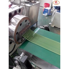 EPDM颗粒造粒 般采用拉条切粒,拉条切粒是 种较为广泛的切粒工艺几乎适用于所有的物料造粒。该种工艺具有设备结构简单操作维护方便等特点由于采用了冷切粒形式,所以避免了粘连现象