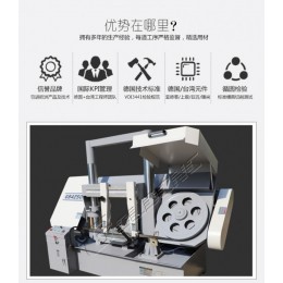双立柱卧式金属带锯床是集机、电、液为 体的全自动带锯床,是锯切较大直径的黑色金属和有色金属等各种型材的设备,具有高效、节能、高精度等特点。其结构合理,造型美观、操作方便,是大中型企业批量 理想的带锯床。