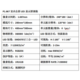 P1.667室内全彩LED显示屏规格