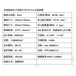 济南旭彩电子有限公司户外P 6全彩参数