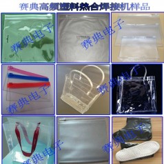吸塑包装(包括上下双泡罩热合切边,泡罩与纸板热合切边),汽车内饰件、商标、文具盒、雨衣、吹气玩具、塑料封面,凉液垫,鞋类制品、坐垫,各种包装袋,手提软袋等的热合加工,各种凹凸形状的花纹图案、字母文字的压花。
