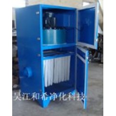 单机布袋式除尘器基本结构;由除尘箱体,风机,滤筒(滤袋),集尘及微电脑控制器等组成,粉尘由风机负压通过吸尘管吸入除尘器箱体内部,利用重力与上行气流, 粗颗粒粉尘被过滤器初滤而直接降至集尘器,微粒粉尘由过滤器捕集在外表面,洁净气体经滤筒或滤袋过滤分解净化后流入洁净室,从而由风机从出风口排出。
