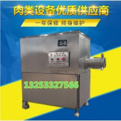 冷冻大盘肉绞肉机绞肉机为系列产品;工作时利用转动的切刀刃和孔板上孔眼刃形成的剪切作用将原料肉切碎,并在螺杆挤压力的作用下,将原料不断排出机外。可根据物料性质和加工要求的不同,配置相应的刀具和孔板,即可加工出不同尺寸的颗粒,以满足下道工序的工艺要求。