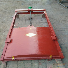 机闸 体式铸铁闸门主要用于给排水、防汛、灌溉、水利、水电工程中,用来截止、疏通水流或起调节水位的作用,根据建设部通用标准和美国AWWA标准设计生产。它采用独特的外弧形设计,结构合理、受力均匀,采用优质灰口铸铁或球墨铸铁,并经精密加工后配研,达到平面接触密封,密封性能好,当密封止水性能下降时,可通过楔块装置的调整加以解决。