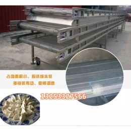全自动饺子生产输送冷冻流水线成套设备,根据客户要求量身订制。复合型往复式速冻隧道是在平板隧道的基础上,根据国内小型生产厂家或老厂址改造,厂地受到限制等厂家的要求设计,研发制作,工艺精细,结构合理,性价比高,对速冻库的大小要求不高, 般有8000*1300*1800mm以上就可以达到生产要求,产量在500kg/小时左右,设备基本型为三层网带,由饺子输送机、爬坡提升输送机、摆动式分散输送机(左右式和伸缩式)、速冻隧道(平板或多层往复式输送机),成品过滤分装料仓组成,通过网带的三层翻转,延长食品在冷库里的时间,从而弥补冷库不足的缺陷。设备大量减少人工操作,省时省力,利于水饺保形,结构紧凑,占地小,投资少,解决企业厂房面积小的困扰。