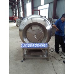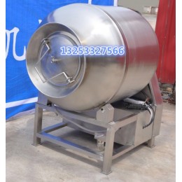 真空滚揉机是在机械容器真空状态下,利用物理冲击的原理,让肉块在滚筒内上下翻动摔打,期间添入盐水等辅料,从而达到按摩、腌渍作用。腌渍渍液被肉充分吸收,柔韧松软、味道鲜美,增强肉的结合力和保水性,提高产品弹性及出品率。搅拌过程中真空泵设置自动抽真空,电控箱可设置定时搅拌时间,间歇时间,搅拌完成后可按钮自动出料。本机采用优质不锈钢制作,结构合理,运行平稳,噪音小,性能可靠,操作简便,设备使用效率高,且干净卫生易于清洗,广泛应用于各类食品加工行业,客户可根据自己加工产品及产量实际情况选择不同型号的真空滚揉机。