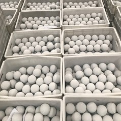 氧化铝瓷球是 种重要的工程陶瓷,属高科技产品。由于合适的硬度、适中的密度、耐磨、耐腐蚀、价格低的特点,以及金属球金属杂质引入的问题,因此氧化铝瓷球被广泛应用于白色水泥、矿物、陶瓷、电子材料、磁性材料以及涂料、油漆等行业的原材料的粉磨和加工,是 种优质的研磨介质。在建筑陶瓷行业中,氧化铝瓷球的磨损效率比天然的燧石和鹅卵石提高。随着优质天然球石资源的减少,普通瓷球磨损率高的特点,氧化铝瓷球将被越来越多的陶瓷厂家所使用根据不同的氧化铝含量,可以分为中铝球、中高铝球和高铝球 般我们把60%—65%氧化铝含量的划为中铝球,75%—80%氧化铝含量的称为中高铝球,90%以上氧化铝含量的为高铝球。其中高铝球又细分为90瓷、92瓷、95瓷和99瓷。99瓷由于其 高的生产成本而很少有大型厂家大批量制造,主要为部分特种陶瓷厂通过手工制作。