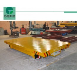 产品特点定制36V低压轨道电动平板车 1-200吨过跨车品质特卖,电动平车上可以假装液压升降系统;平车直流电机有启动平稳、启动力矩大、对减速机冲击小、电压低、使用寿命长等优点。具有安全性和机动灵活性;对轨道铺设要求较高(需要 缘处理轨道),