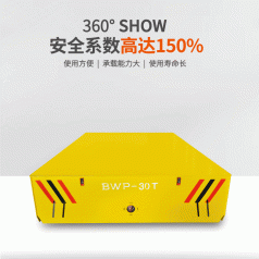 包胶轮无轨道电动平板车 定制款5吨转弯过跨工具车 ,Bwp系列平车包含有直线行驶、直角转弯、原地旋转,爬坡等四项基础功能。根据需求可加设升降台、遇人停止、纵横移动等额外功能。小车车身灵活,可在复杂环境或狭小空间运行。即可以搬运模具、机床等常规物品,也可以搬运卷钢、金属管、液态原料等物品。根据行业的不同用途,平车同样可以作为搭载平台,承载多种机床,控制台等专业设备作为移动化作业平台。为适应各类环境,平车可做耐高温、防爆、防腐蚀等特殊处理,能够在高温、酸腐地带以及无尘环境下正常作业。相较传统轨道平车而言,bwp系列平车无需轨道铺设等额外成本,活动区域广泛,不会破坏工厂原有布局。因此,bwp系列平车能够广泛运用于建筑工地、船坞、工厂车间、室内实验室等多种场所,横跨多种专业领域。