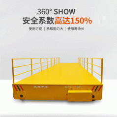 自动化生产线配套运输地平车 多点停靠轨道电动平板车厂家推荐,KPC系列滑触线供电轨道平车,是将交流380V的安全滑触线直接引入平车交流控制系统,来控制平车的启动、停止、前进、后退等。通过平车的移动带动安全滑触线的滑块来实现给平车供电,安全滑触线受安装位置的限制,可以安装在轨道中间或道轨外侧地沟内,为了安全和方便可以在地沟上方增加改版,通过自动翻板装置,来实现地沟内的电源引入轨道平车上,操作系统为低压36V电源控制。