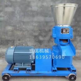 宏优机械设备有限公司专业生产饲料颗粒机:所产颗粒、光滑、硬度好;适应鸡、猪、鱼、鸭、等畜禽。适合个体、家庭、小型养殖场,饲料颗粒机以圆周运动为原理,模板、压辊采用优质合金钢经特殊处理,主轴及平模在摩擦力作用下,带动压辊自转,物料在压辊与模板之间高温糊化,蛋白质凝固变性,在压辊挤压下从模孔中排出,制成广东小型饲料颗粒机,又名小型颗粒饲料机KL系列小型家用饲料颗粒机产量的颗粒经甩料盘送出机外,通过切口可调颗粒长短。广东饲料颗粒机在造粒过程中不需要加水,不需烘干,经自然升温达70度左右,可使淀粉糊化,颗粒内部熟化深透,表面光滑,硬度高,可长期储存,是养兔、鱼、鸡、猪、羊、牛专业户及中小型饲料加工厂降低殖厂成本,提高经济效益的理想设备, 选机型。