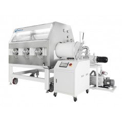 针对解决激光焊接中空气中的湿度以及空气中杂质的影响,该手套箱有两个90度方舱,左侧为加热舱,右侧为过渡舱,加热舱 高温度200℃,加热板可以同期快速冷却,方舱门外侧为手动门,内门为自动门,内外门互锁,手套箱体通过流量计控制清洗,也可以连接净化系统。