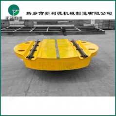我公司生产的电动换轨转盘是 种能够在90度转弯的轨道上运行的转运车。它非常适用于装备生产线的环形轨道、交叉轨道等工作场合。通过运载车辆行驶到换轨转盘上,转盘转过指定角度的轨道上,来实现任意角度交叉轨道的换轨操作,安装自动化定位装置,实现平车平稳的轨道对接,可通过自动化定位装置来调整对接轨道的角度来实现准确对接,另外可以实现自动化无人控制。