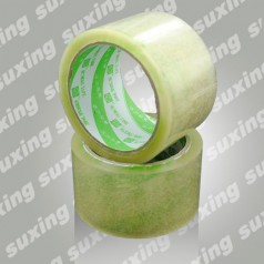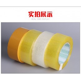 又称之为bopp胶带、包装胶带等,它是以BOPP双向拉伸聚丙烯薄膜为基材,经过加温均匀涂抹压敏胶乳液,使其形成8μm----28μm不等的胶层,是轻工业类企业、公司、个人生活中不可缺少的用品,国家对胶带行业还没有 个完善的标准,只有 个行业标准《QB/T 2422-1998封箱用BOPP压敏胶粘带》 把BOPP原膜经过高压电晕处理后, 面表面形成粗糙,在将胶水涂在上面, 形成母卷,再通过分条机分切成规格不等的小卷,就是我们日常使用的胶带了。压敏胶乳液,主要成分是丁酯。 生产规格: BOPP封箱胶带规格用“宽×长×厚度”表示,其中“宽”即是胶带的宽度, 般用mm或cm表示, 般≥10mm,早在80年代以前,常见规格有:72mm、60mm、50mm、30mm等;现如今,已经逐渐改为:60mm、48mm、45mm、40mm、30mm等;“长”为胶带拉开以后的总长度, 般用“m”或“码”表示(1码=0.9144m),常见长度有50m、100m、150m、200m、500m等;厚度是指BOPP原膜+胶层的总厚度(单位:微米、μm),常用的有45~55μm。如“50mm×100m×50μm”