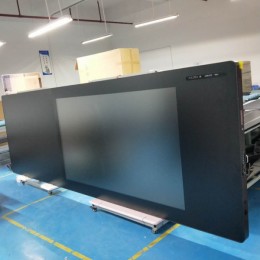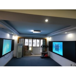正面显示为 个由三块拼接而成的平面普通黑板,可以在上面用各种水笔书写,又可以根据需要采用粉笔书写。当打开电源时,中间 块显示出液晶的显示画面,可以进行触摸互动,而关掉时,显示画面隐形,又显示为 个普通黑板的表象,在上面进行书写