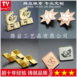 主要工艺有:蚀刻(咬板)、压冲、注漆(填油)、丝印、滴胶、仿珐琅、锌合金压铸、柯式印刷等。材料可选用铜、铁、锌合金、马口铁、亚克力、铝、铅锡合金、PVC等材料。