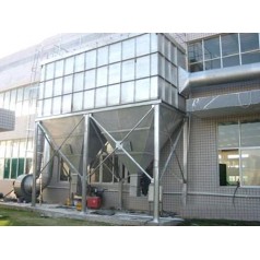 家具厂除尘器在生产中产生的粉尘被吸尘风管收集后,经调节碟阀、进风管进入木工除尘器,粉尘被阻留在滤袋外,干净的气体经滤袋、引风机、烟囱达标排放至大气。家具厂除尘器收集的粉尘埋刮板输灰机输送至料仓,通过料仓卸料口经锯末压块机自动压块。针对木材粉尘的亲水特性,粉尘在有 定的水分的含量下容易结块的特点,在除尘器灰斗里面架拱成桥导致堵料现象,在除尘器灰斗设计有振动器,进行辅助清灰,减少人工辅助清灰的工作;针对木材粉尘浓度大的特点,对除尘器采用渐变的气流通道设计,保证气流均匀分布。对气流组织进行设计,避免对除尘器内部局部区域高速冲刷与磨损,为用户节省了维护成本。