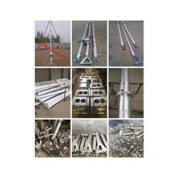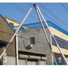 三脚架立杆机采用天津铝合金厂生产的高 原材料,通过本厂技术人员多年的开发,研制,现已正式投放市场,三脚架立杆机体积小,重量轻,应用灵活,方便保险,系数高,解决了吊车不能进行的产地及人工立杆危险性的难题(市区胡同或半山区丘陵地带施工)更能体现其特点,整套立杆过程只需几个人在短暂的十几分钟内完成。