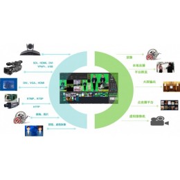 推流:同时向四个平台推流、内嵌流媒体服务器,支持本地直播观看 | 录像功能:导播录像、资源录像、慢动作回放、延时直播、虚拟摄像机输出,支持其它直播软件调用 | 模板:拼接画面模板、支持自建模板、模板库管理;拖拽、实时更换模板内容 |